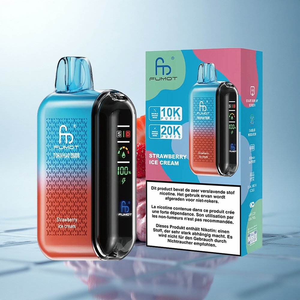 Fumot Tornado 20000 Puffs Gelato alla Fragola con Doppia Maglia e Display Intelligente