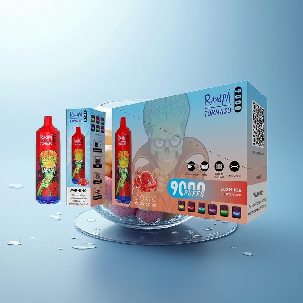 RandM Fumot Tornado 9000 Puffs Ghiaccio Lussureggiante con Batteria Ricaricabile e Coil a Maglia