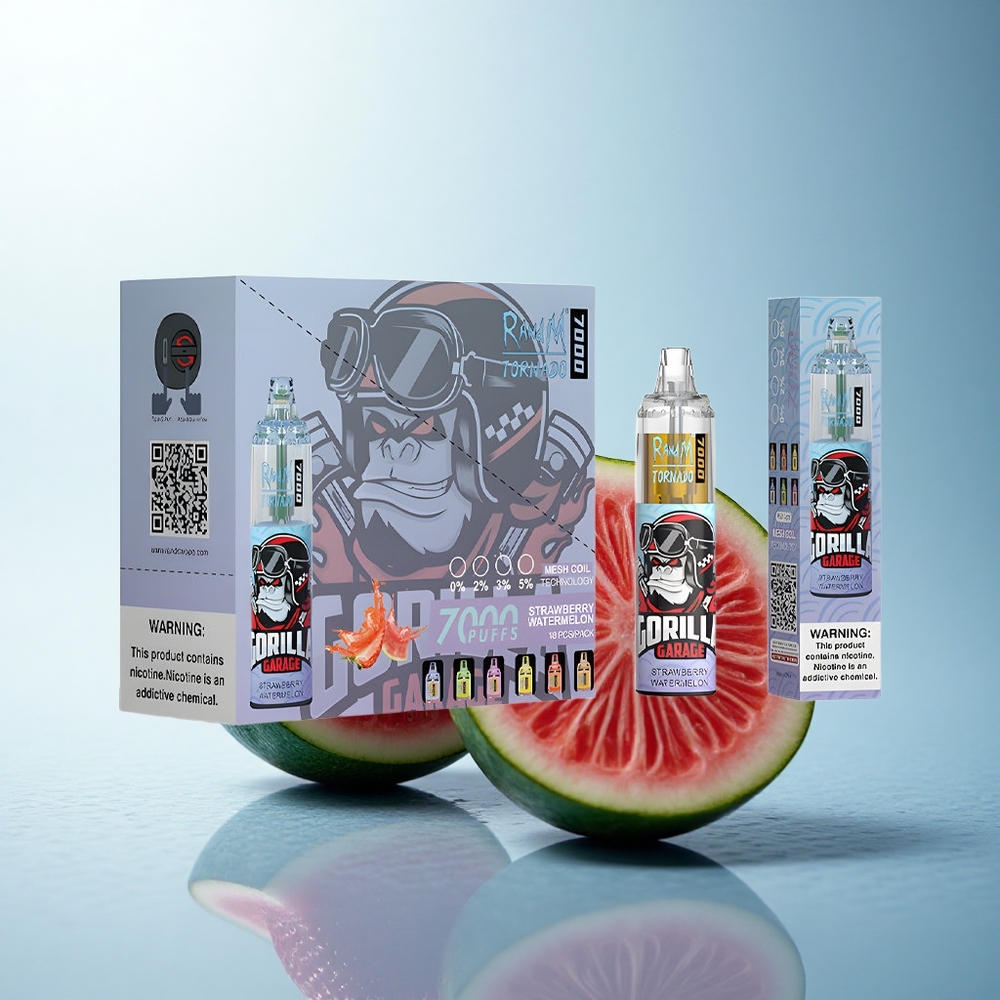 RandM Fumot Tornado 7000 Puffs Fragola Anguria Mesh Tipo-C Luce RGB